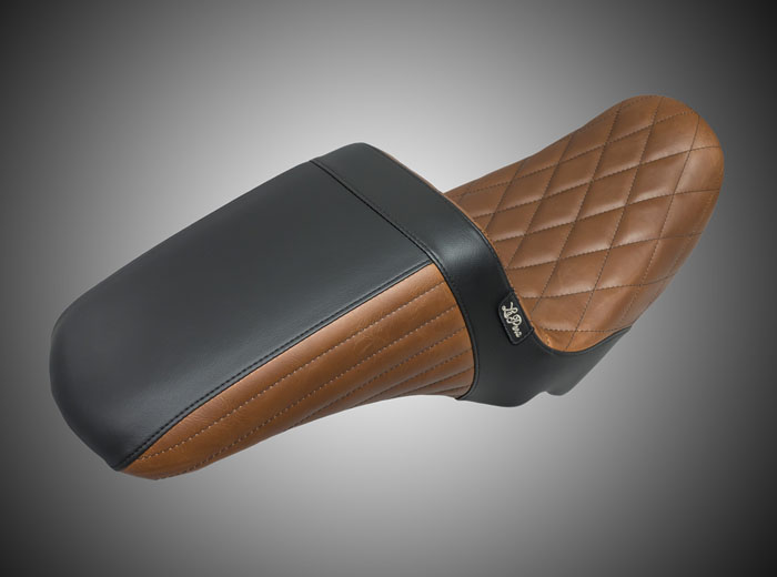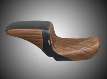 Shown with TDV Brown Distressed Vinyl seating and sides with the Diamond Stitch. Also available with Basket Weave, Pleated Stitch and our new Gripp Tape material - for when traction is needed! Many other custom materials and stitch graphics are available as well!