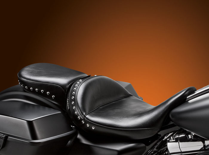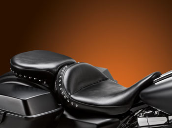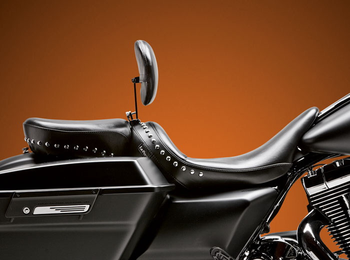 LePera's Monterey Solo and Pillion with the removable backrest offers classic touring style and maximum comfort. The Monterey solo with backrest has a 15" wide driver area that can be ridden as a solo seat or you can add an optional 14.5" or 11" wide removable passenger pad.