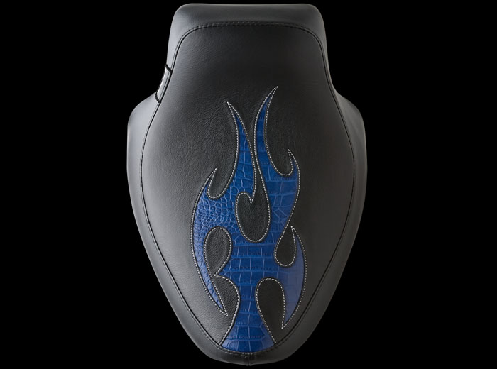 The Razor Inlay shown features embossed blue gator on our Silhouette Solo with leather seating MSRP $458.00