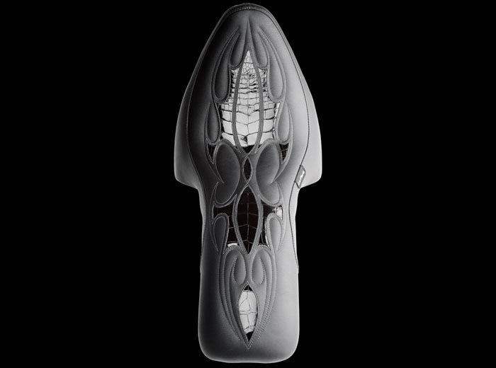 The Serpent Full Inlay shown features embossed black gator on our King Cobra with leather seating MSRP $735.00