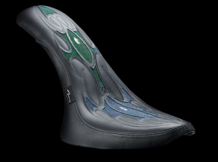 The Serpent Full Inlay shown features genuine blue and green sting ray on our King Cobra with leather seating MSRP $1000.50