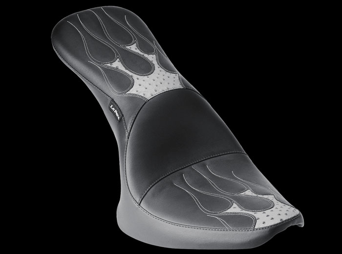 The Classic Flame Inlay shown features embossed gray ostrich on our Maverick in vinyl MSRP $780.00