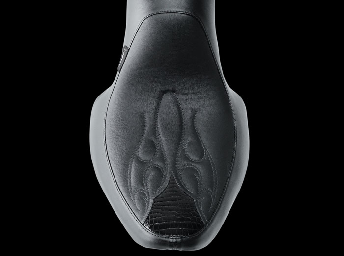 The Dual Flame Inlay shown features embossed black gator on our Silhouette with leather seating MSRP $596.00