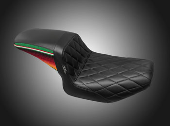 Shown with Diamond seating area. Also available with Basket Weave, Pleated Stitch and our new Gripp Tape material - for when traction is needed! Many other custom materials and stitch graphics are available as well!